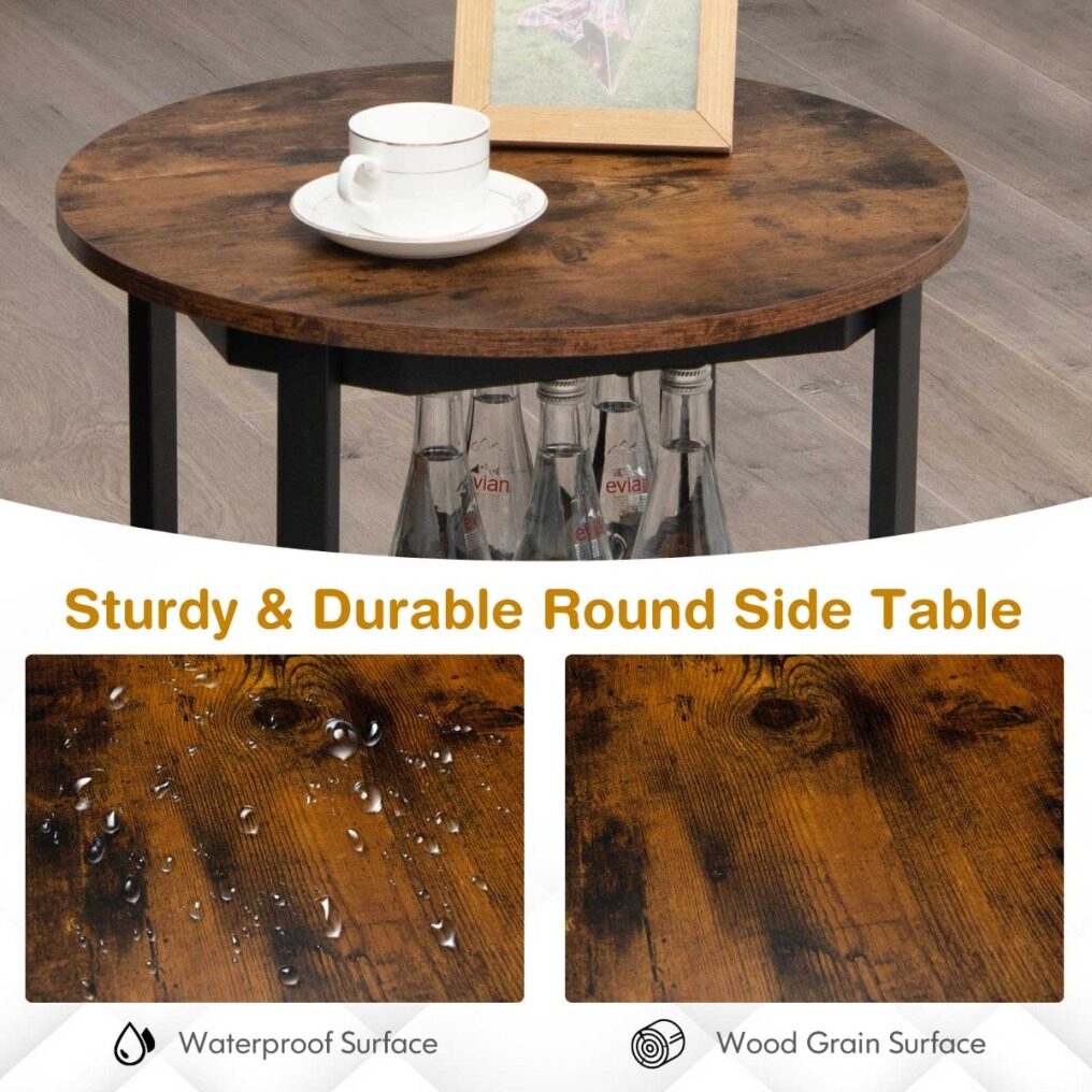 Thoughtful Design: This industrial end table is compact to take little space. Child-friendly round design protects your knees from bruises. And it is equipped with adjustable non-slip footpads to keep stable even on uneven ground, while prevent the floor from being scratched.