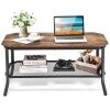 With a wide desktop and mesh shelf, this coffee table provides ample storage for your books, teacups, and decorations. A heavy-duty frame and thickened board promise long-lasting service time. Thanks to the corner-cut design, you don't have to worry about accidental injury. The combination of the industrial look and functional utility makes this coffee table a great complement to your existing furniture. It will be an aesthetically appealing piece of furniture for your living room, office, or reception room.