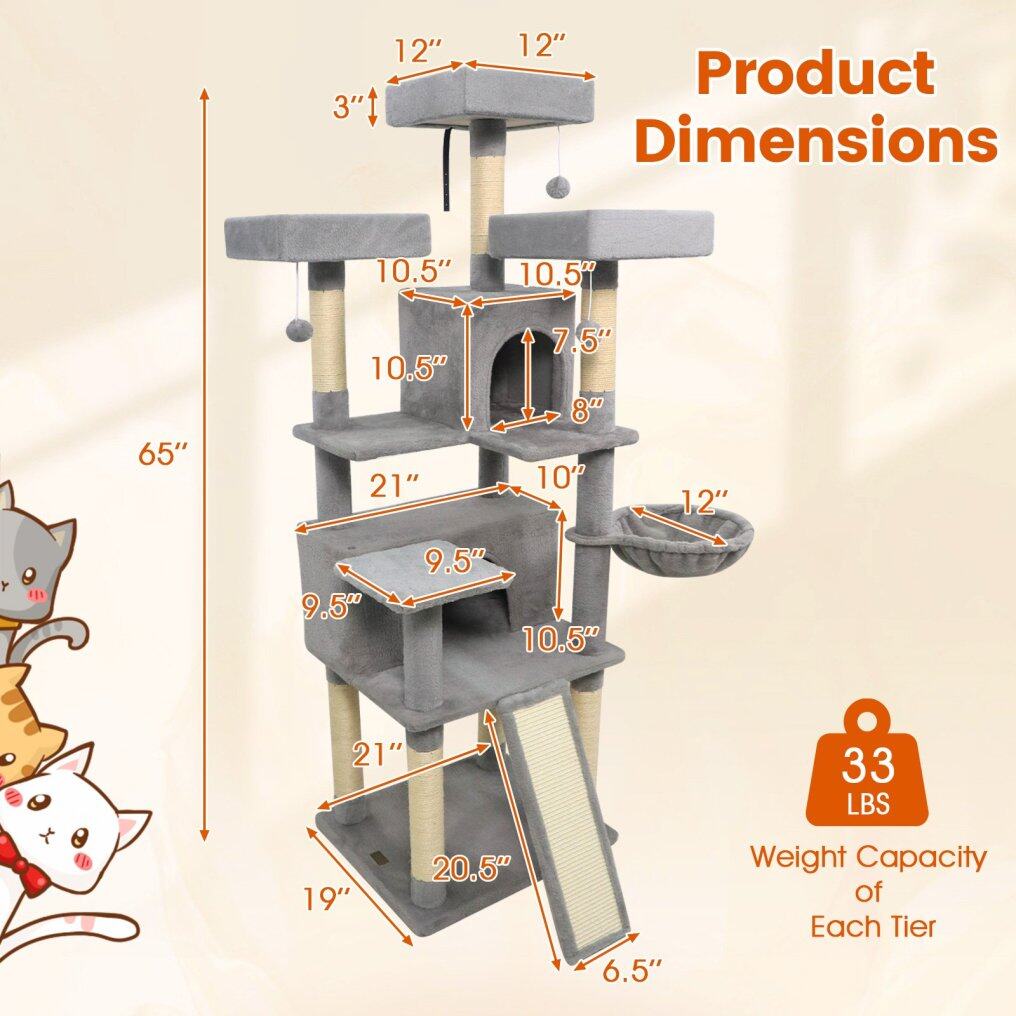 ● Comfy Living Areas: The multi-level cat tree comes with 2 large cat condos, which offer a comfy spot for your cats to lounge and sleep. Plus, the wide jumping platforms and a cozy cat bowl add more comfort to your cats, while the 3 hanging balls provide entertainment and exercise for cats.