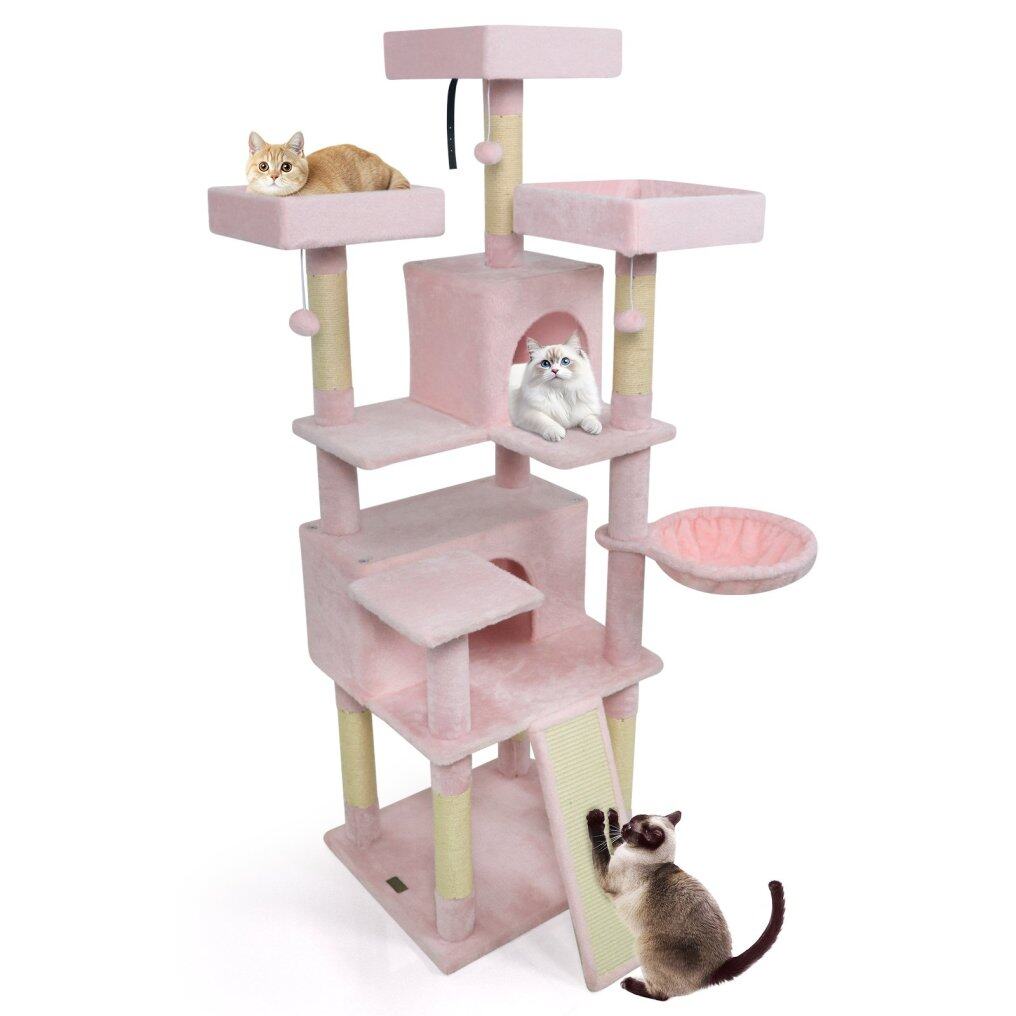 ● Satisfy Cat's Scratching Instinct: The tall cat tree features wear-resistant scratching posts, perfect for releasing your cat's natural scratching instincts. Plus, the ladder with a scratching board provides more space for cats to grind their claws.