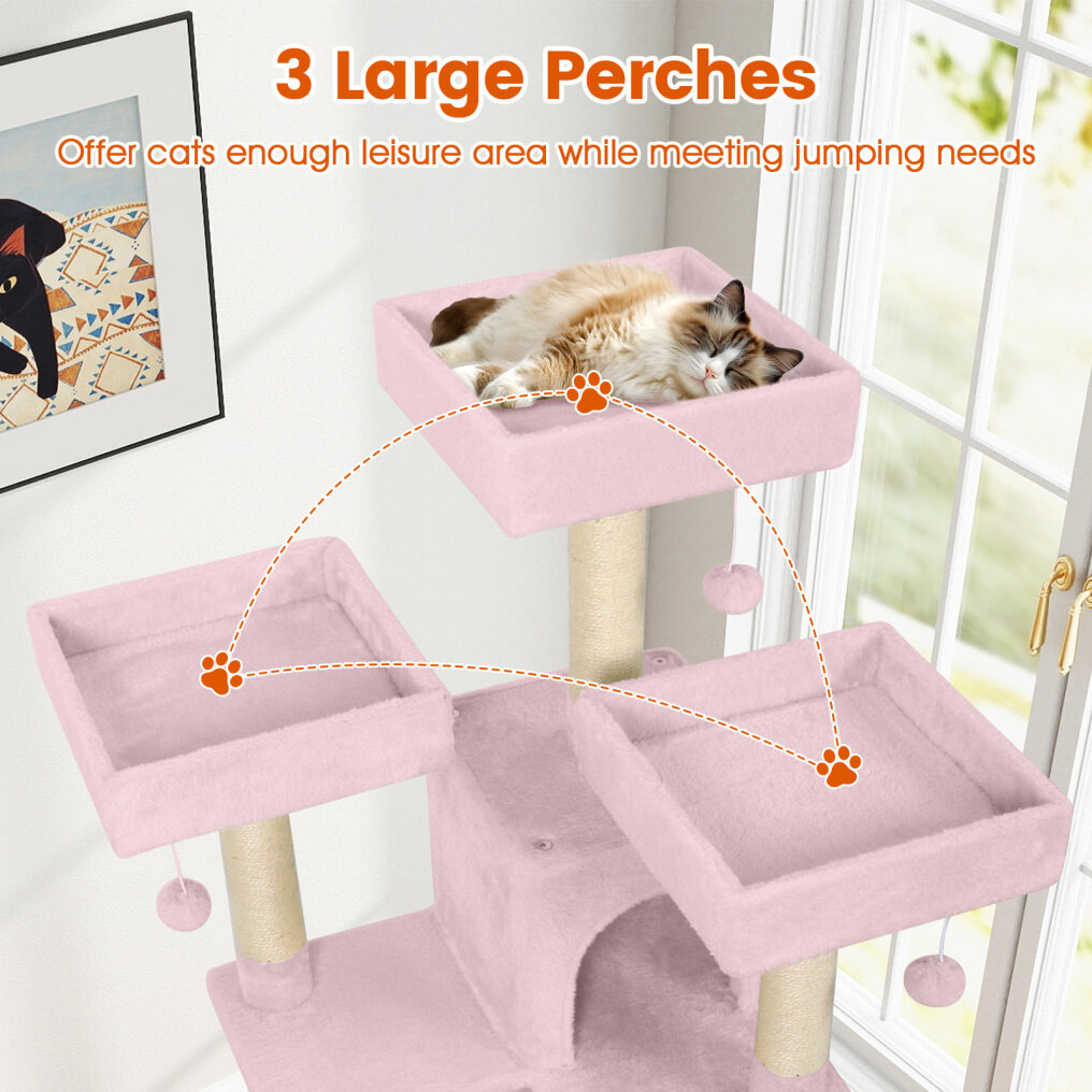 ● Comfy Living Areas: The multi-level cat tree comes with 2 large cat condos, which offer a comfy spot for your cats to lounge and sleep. Plus, the wide jumping platforms and a cozy cat bowl add more comfort to your cats, while the 3 hanging balls provide entertainment and exercise for cats.