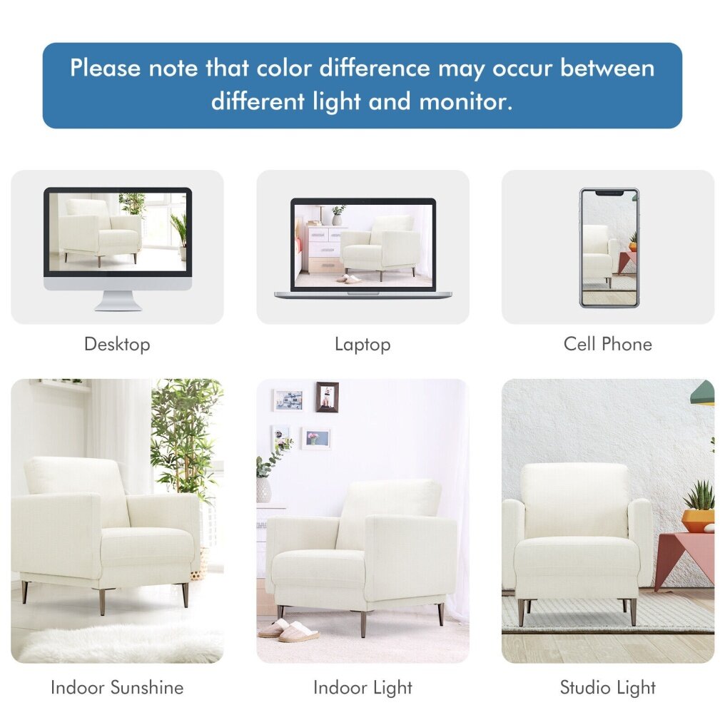 ● Contemporary Style: Designed with a modern look, this single sofa chair presents a statement piece of furniture to stun your room. The legs are finished with a unique color to add focal point. It softens the look and feel of your room and creates the perfect resting space.
