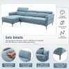 The blue outlook and clean lines endow the sofa with fresh and simple appearance. Coming with overstuffed backrest, cozy armrests and 7" ultra-thick seat cushions, our sofa makes you comfortable and relaxed when sitting or lying on it. The headrests with a wide adjustable range of 0-120° can relieve soreness of your head and neck. The skin-friendly fabric and high-density sponge take comfort to the next level, and serpentine spring helps maintain elasticity for long-term use. The sturdy metal legs with non-slip foot pads ensure stability. Moreover, with high bearing capacity of 800 lbs and spacious sitting area, this 3-seat sectional sofa is able to accommodate 3-4 people with ease.
