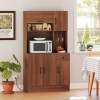 ● Integrated Charging Station: This pantry cabinet features a built-in charging station that is easy to charge microwave, coffee maker and other appliances. There are 2 outlets, 1 USB port, and 1 type-C port to keep electronics powered up and within reach.