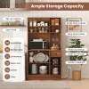 ● Ample Storage Capacity: This cupboard boasts a spacious countertop for appliances, a stemware rack for storing 4-6 wine glasses and an open shelf for frequently used items. Moreover, the multiple storage cabinets and a handy drawer provide concealed storage space for kitchenware and dinnerware.