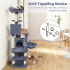 Multiple Resting Spots for Relaxation: This tall cat tree features 2 cozy top perches, 2 spacious cat condos, a soft hammock, and a comfortable basket - providing a variety of relaxing and private spaces for your cats. Each spot is thoughtfully designed to cater to cats' needs for napping, lounging, and observing their surroundings.
