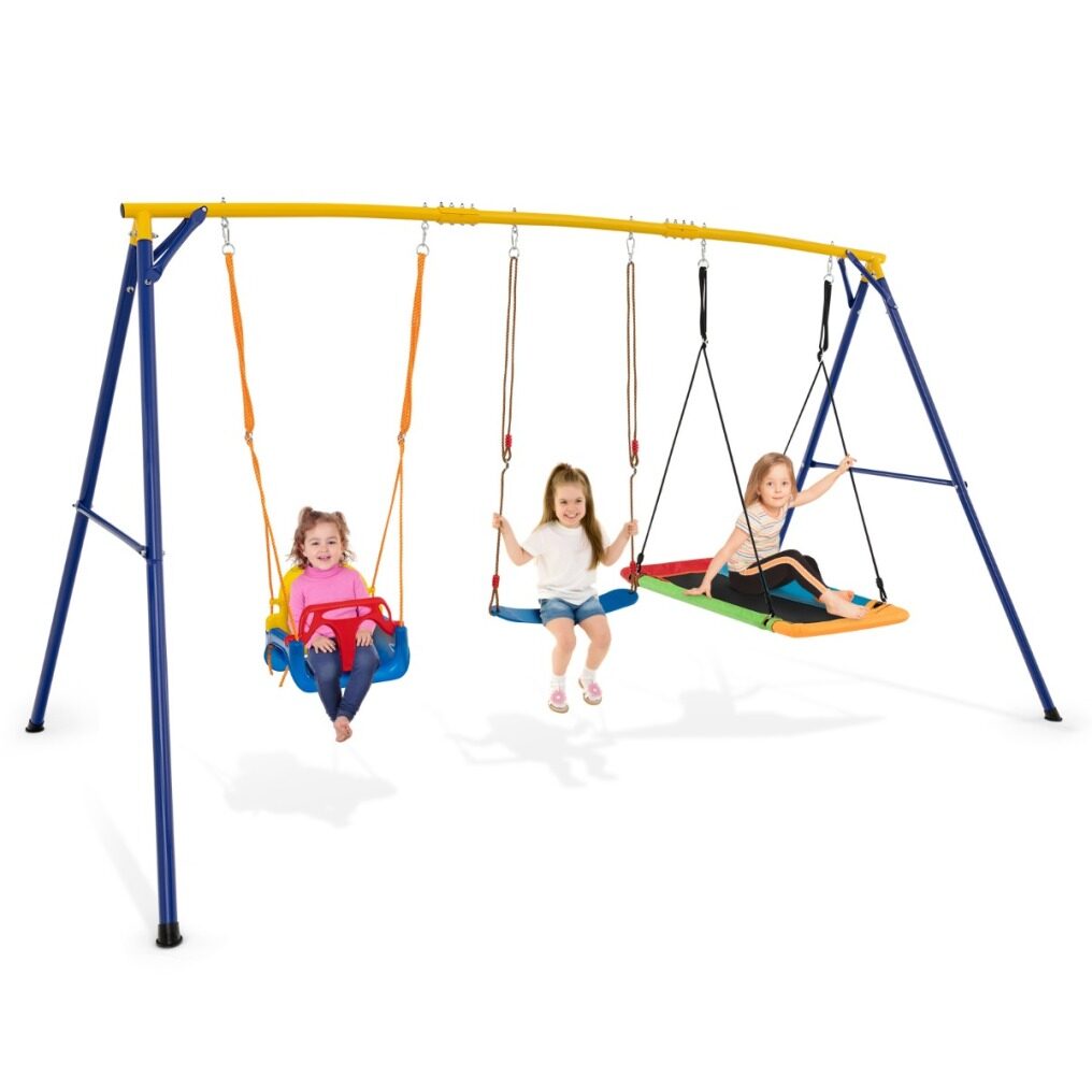 ● Interesting and Safe Play Set : This 3-in-1 swing set will be a nice gift for toddlers aged 3-10 years old. 3 kinds of swings allow kids to play with their friends, adding extra happiness. Furthermore, it also helps to encourage kids to enjoy outdoor sports. The swing set also has passed ASTM and CPSIA certification for high safety.