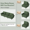 Shipped in 3 Boxes: This sectional sofa is packaged in 3 boxes-box A contains the left seat, left backrest, left armrest, and legs, and the box b includes right seat, right backrest, right armrest, and legs. As for the middle armless seat, it will be packed in box E. These boxes may come at different times.