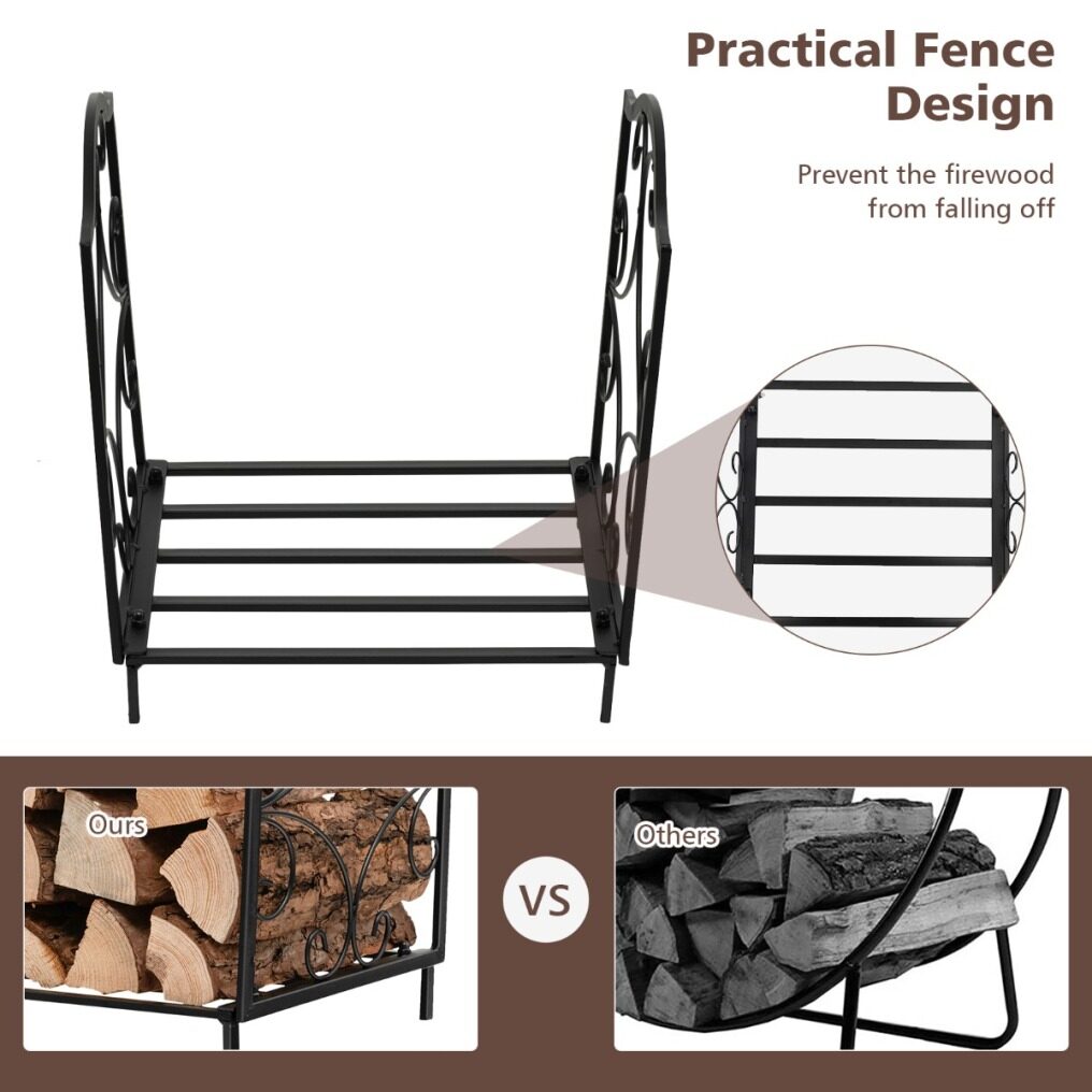● Heavy-duty Steel Construction: Crafted of heavy duty steel frame with powder-coated finish, this firewood rack is rustproof and durable for long-lasting service. What's more, the firewood rack can firmly load up to 132 lbs without any crack or deformation.