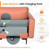 Detachable structure allows for free combination. Suede fabric cover and sponge filling ensure soft touch and comfortable sitting experience. To offer more comfort, we also design it with soft back pillows and side bolsters. Besides, the steel backrest has USB ports, 3-hole socket, hidden storage space and fixing knobs. Distributed elasticity system ensures super comfort and long-term use. Solid metal legs with pads ensure high durability and stability. Moreover, side pocket provides extra storage. The sofa couch with removable structure is easy to combine.