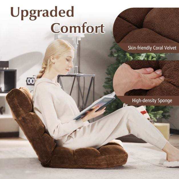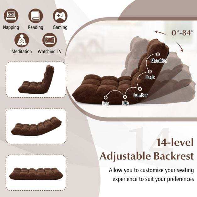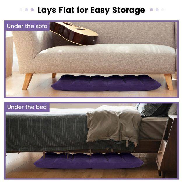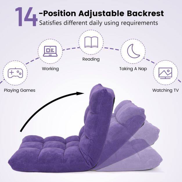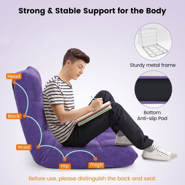 ● Multi-purpose Use and Easy Storage: Whether you're reading, playing games, watching TV, or meditating, the floor chair will provide a comfortable and soft seat for you. 14-position backrest offers different angles, suitable for different occasions. Thanks to its folding function, the chair can be easily flatted to store under the bed or tall couch, saving much space.
