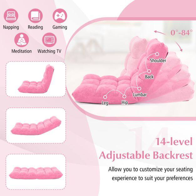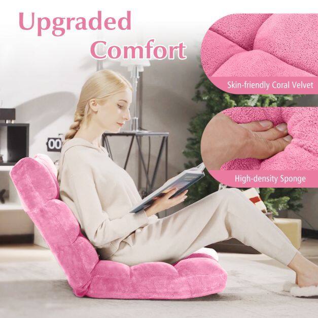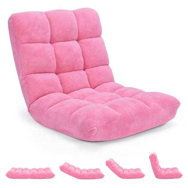 Adjustable 14-position Cushioned Floor Chair-Pink