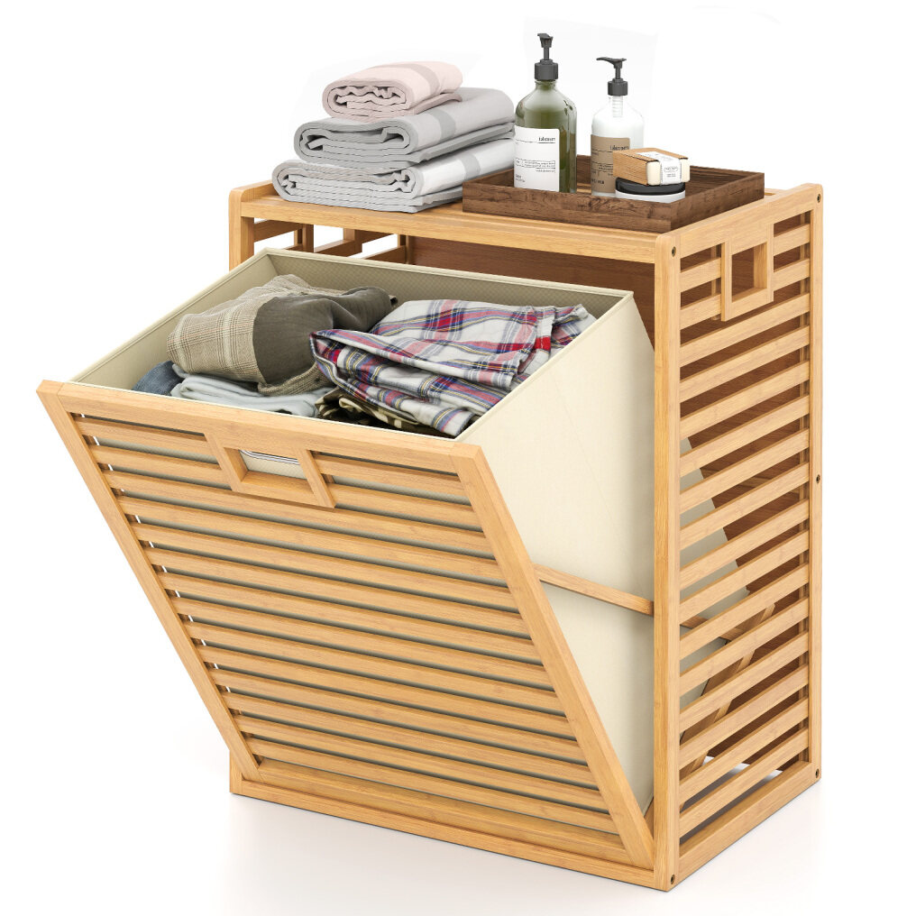 Natural Bamboo Frame: Made from high-quality natural bamboo, our tilt-out laundry hamper adds a touch of natural charm to your space, and its water-resistant finish ensures its durability and strength for repeated use.
