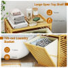 Designed to simplify your laundry storage, our tilt-out laundry hamper helps to keep your changed clothes organized, hygienic, and out of sight. Its top area doubles as an extra storage space for your toiletries, and its 300D polyester storage bin is removable from the hamper, streamlining your laundry routines. Whether in your bathroom, laundry room, or living spaces, it adds a touch of modern flair and keeps your space free of clutter. Start organizing today!