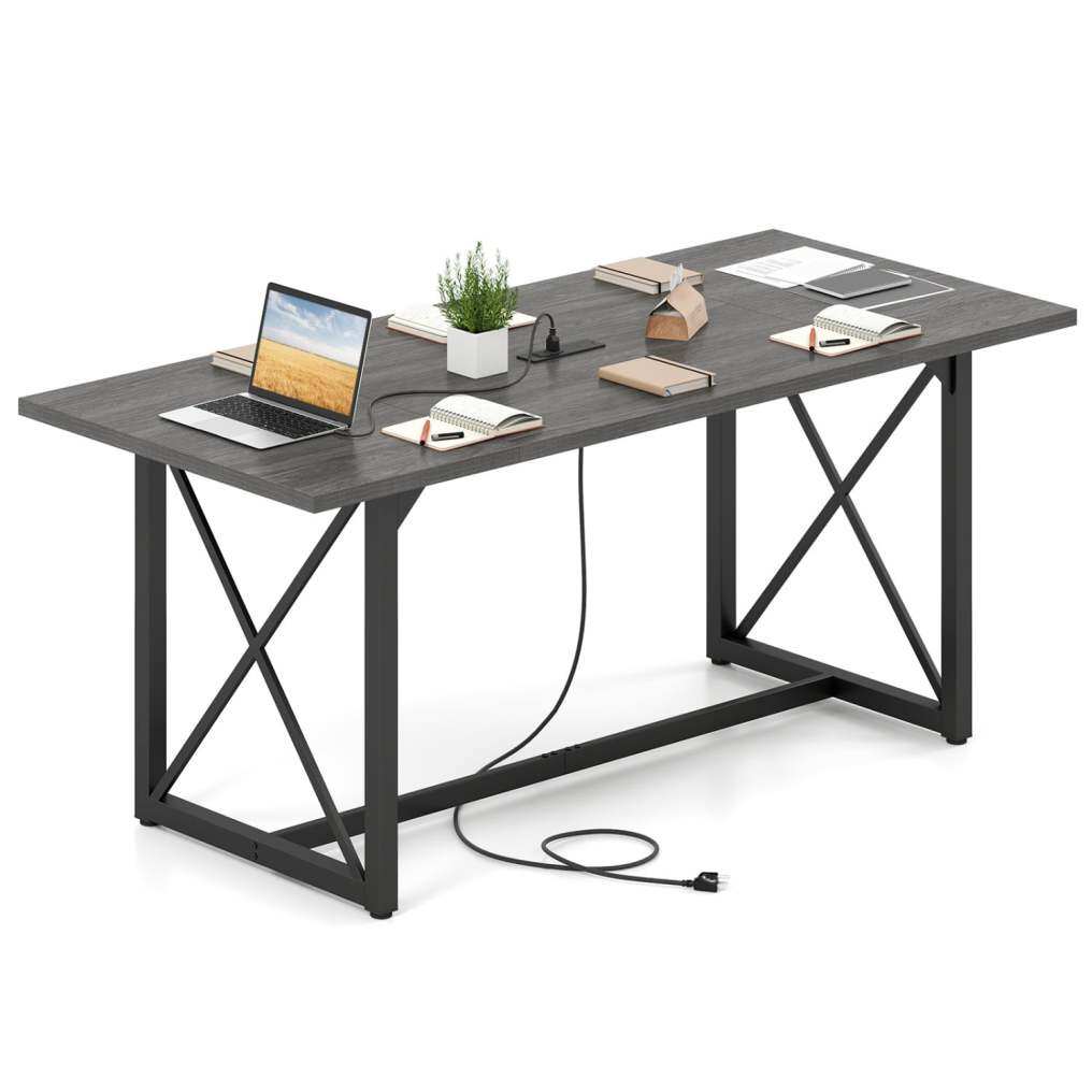 ● Modern Industrial Style: Its smooth finish with rustic wood texture offers natural appeal, while the matte black metal frame adds a striking, contemporary industrial flair. This versatile aesthetic allows the large meeting room table to complement a variety of office decorations, from modern lofts to executive suites.