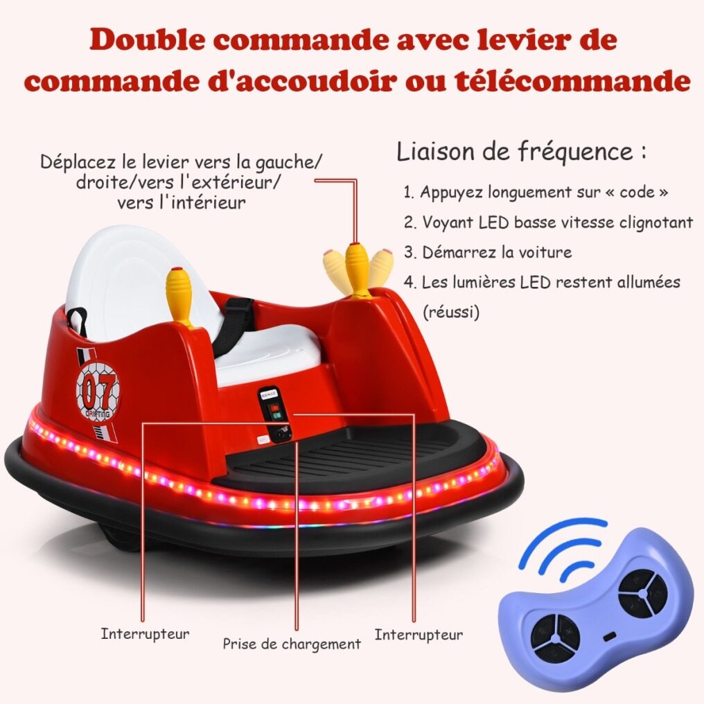 2 control modes: The car can be controlled by children using the simple joysticks. It also comes with a remote control for parents to control if the little ones cannot do it themselves.
