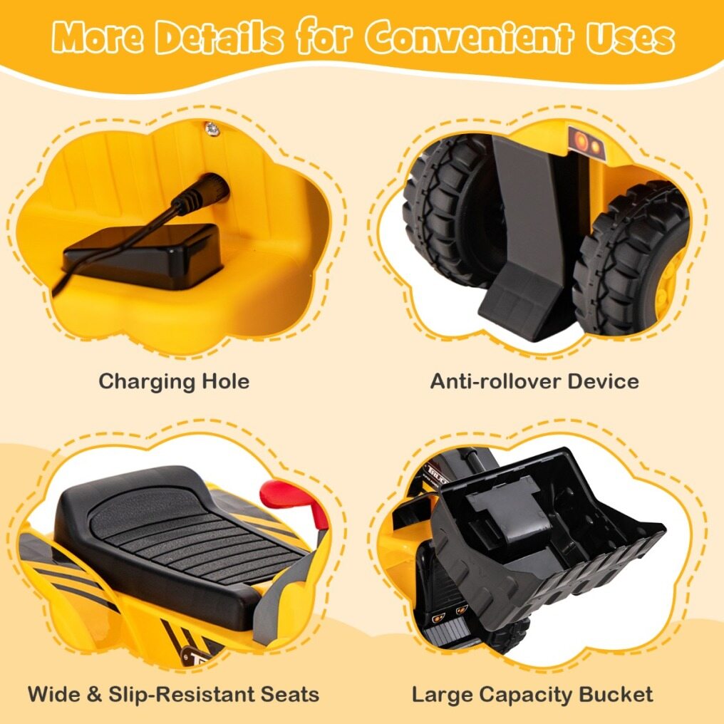 With its sturdy construction and durable materials, this ride-on toy is built to withstand the active play of energetic kids. It features a comfortable and anti-slip seat and flexible steering wheel, ensuring your child stays secure while enjoying their excavation adventures. Designed with its realistic features, such as an adjustable bucket angle and arm height, forward/backward buttons, fantastic music effects, and foot pedals, the ride-on excavator is easy to operate for great fun. The under-seat storage space is a nice place to store nice items. Delight your little one with our captivating ride on excavator!