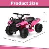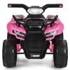 Rechargeable Battery and Thickened Wheels: The ride-on quad has a 6V 4Ah battery. In a fully charged condition, it will allow for 40 mins of playtime. And 4 wear-resist PP wheels enable the electric ride-on ATV to run on different grounds, either indoors or outdoors, such as the wood floor, asphalt road, and more.