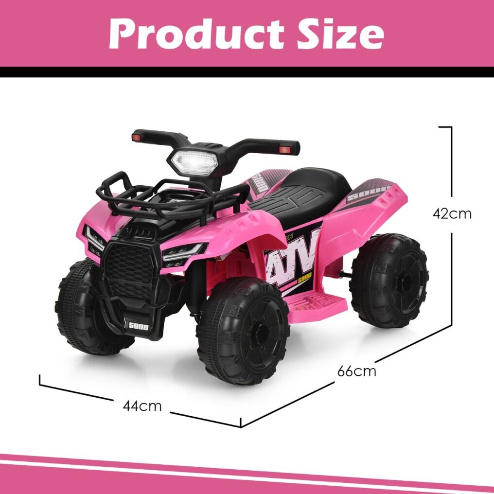 Comfortable and Safe Ride-on Car: Featuring a low center of gravity, this kids’ electric 4-wheeler quad is safe and stable to drive. And the wide seat fits kids’ body curves for coziness while the footrests comfortably accommodate toddler’s feet.