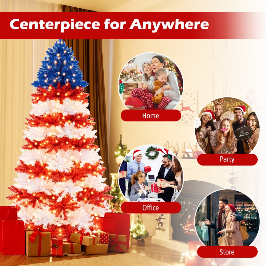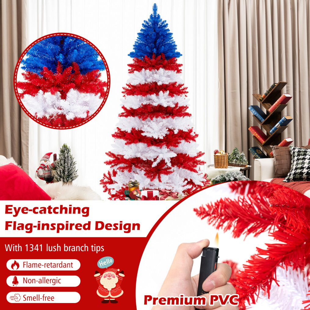 ● Flag-inspired Color Scheme: The patriotic tree boasts a unique color palette of red, white, and blue branches that vividly represent the American flag. The unique design not only evokes the spirit of American pride, but also adds a spectacular pop of color to your holiday decor.