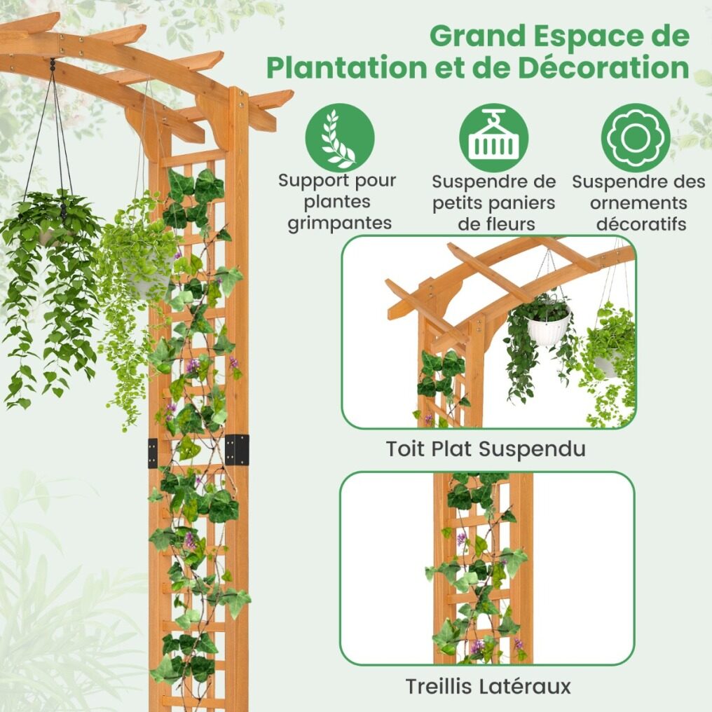 Generous space for plants and decoration: The gazebo features a flat hanging roof/arched hanging roof and side trellises that support climbing plants and allow them to grow gracefully. It also makes a lovely holder for small flower baskets or decorative ornaments.