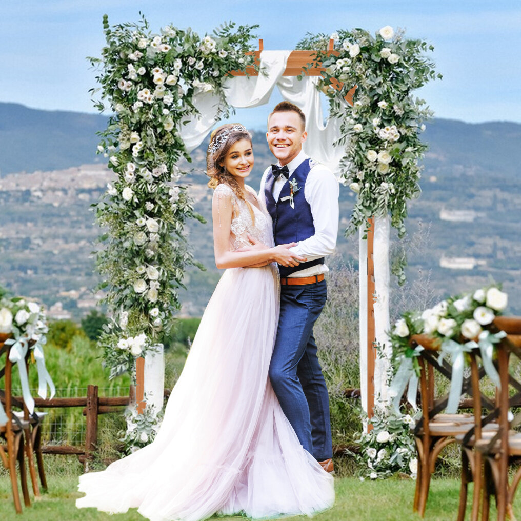 Versatile decoration options: Place this wooden arch in your garden or lawn and customize it with climbing plants like roses, vines, and morning glory. Or decorate it creatively with colorful balloons, wedding tulle, garlands, and LED lights to make it your very own.
