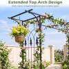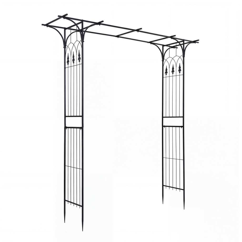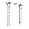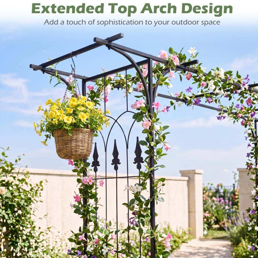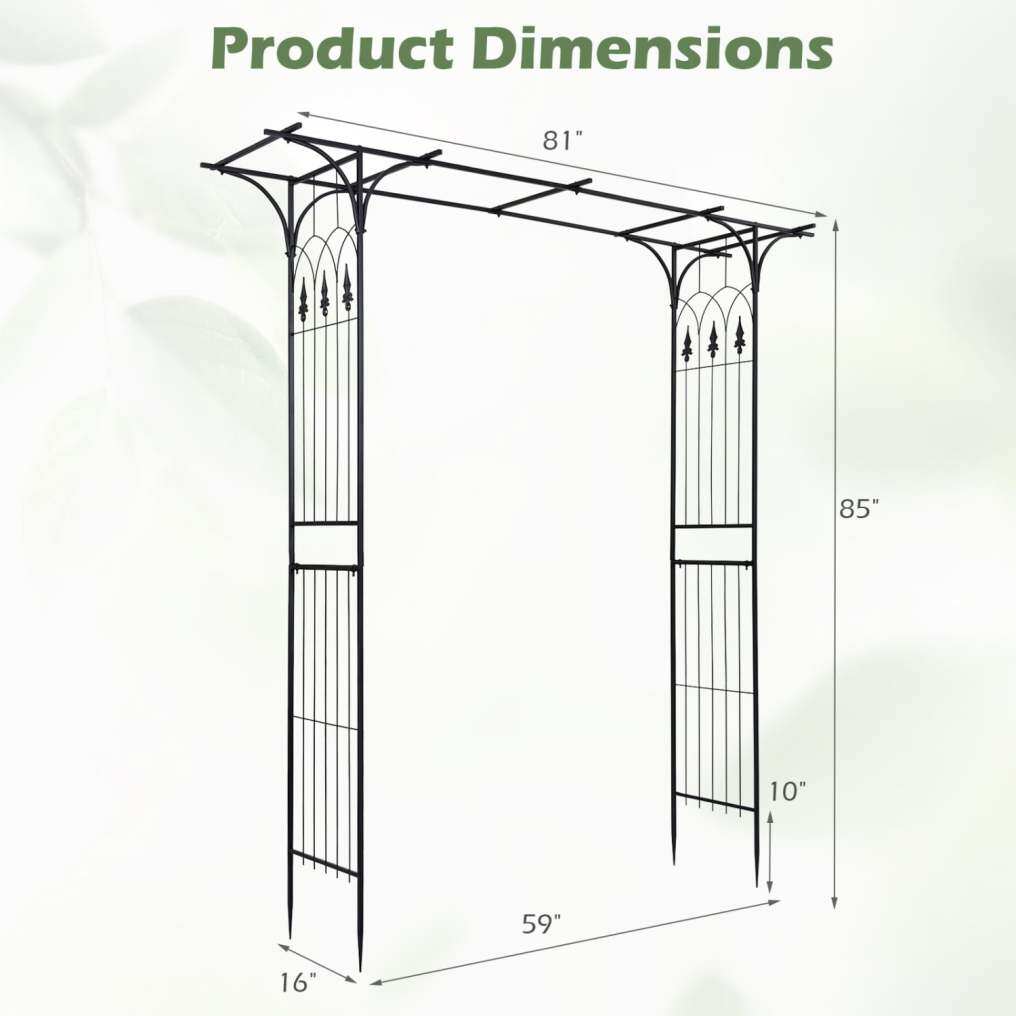 ● Refined & Chic Look: Featuring an elegant flat roof with extended edges, this garden arch arbor creates a stunning cascading effect for vines. Its delicate side patterns and sleek black finish add a striking focal point to any yard.