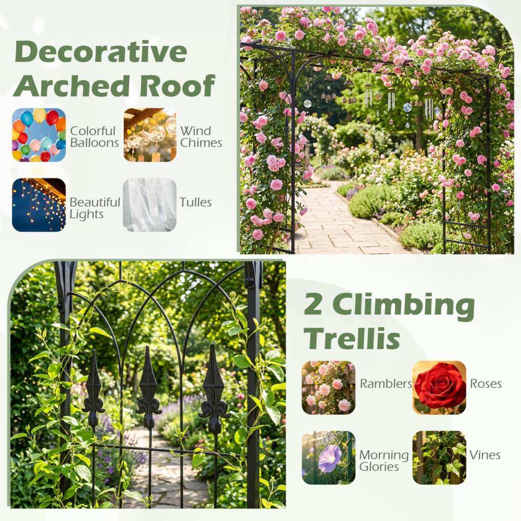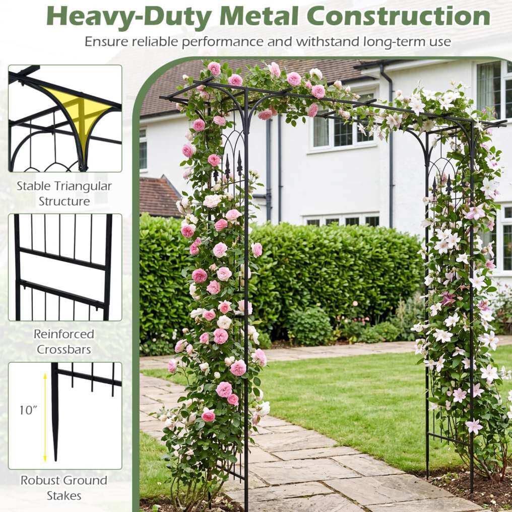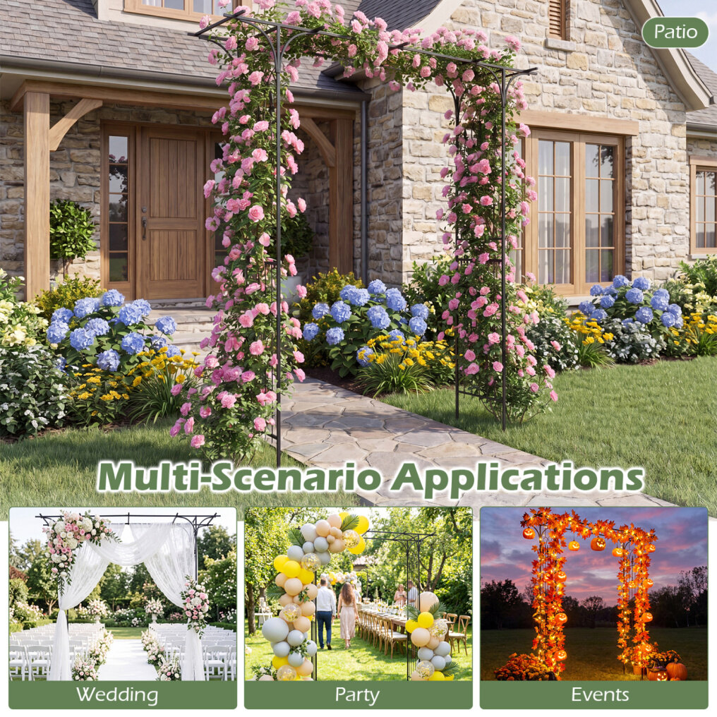 ● Versatile Application: This patio arch stand can be used as a backyard entrance, a wedding arch, or a garden climbing pergola. It supports roses, ivy, and vines, and also serving as a perfect backdrop for parties, birthdays, and other outdoor events.