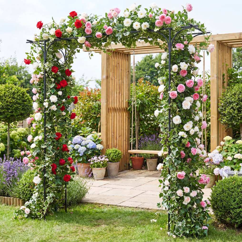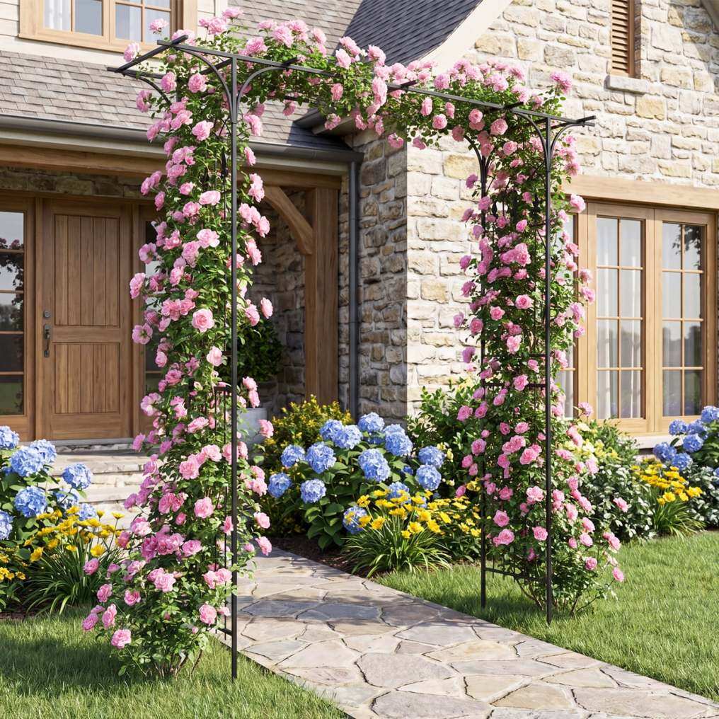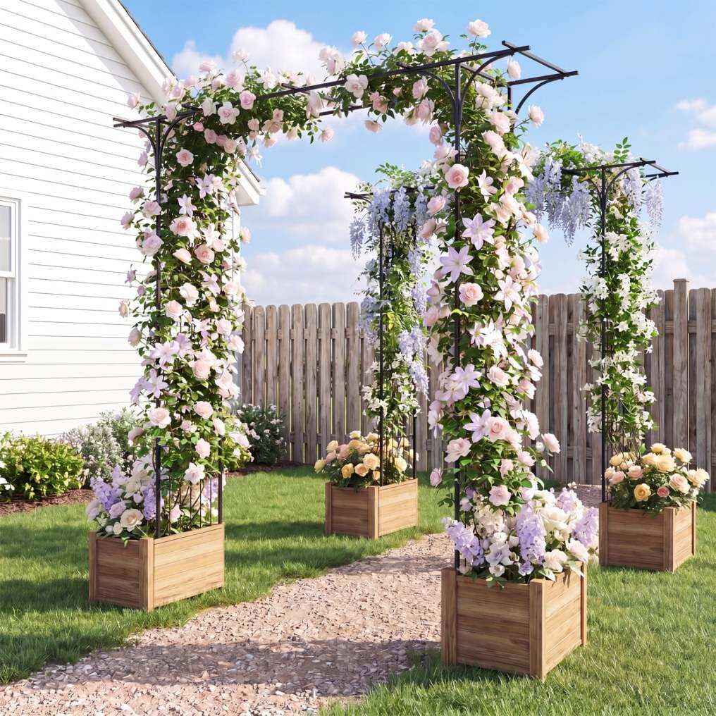 ● Versatile Application: This patio arch stand can be used as a backyard entrance, a wedding arch, or a garden climbing pergola. It supports roses, ivy, and vines, and also serving as a perfect backdrop for parties, birthdays, and other outdoor events.