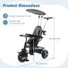 ● Multi-Position Adjustments: With height-adjustable push handle, this toddler stroller bike accommodates parents of various heights. The canopy provides multiple adjustable positions, while the optional seat positions and foldable footrests bring customizable comfort tailored to your toddler's needs.