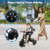 ● Baby's Safety Takes Priority: Safety remains paramount with a 5-point harness and a detachable guardrail to keep your child secure throughout every outing. Additionally, the rear-wheel brake system allows parents to effortlessly bring the kids trike stroller to a halt, enhancing overall protection.