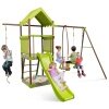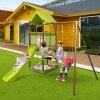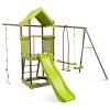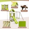 ● 7-in-1 Kids Swing Set: This outdoor swing set features a covered fort, climbing rope, ladder, wave slide, sandbox, glider and swing, offering endless entertainment for your children. There are 3 boxes. Please start assembly with all of them.