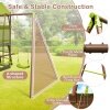 ● Safe and Stable Construction: The backyard playground boasts a heavy-duty metal frame, providing a safe play environment for kids. Besides, the A-shaped structure, sturdy metal plates and reinforced cross bar enhance the overall stability. Equipped with extra ground stakes, this metal swing set is more stable.