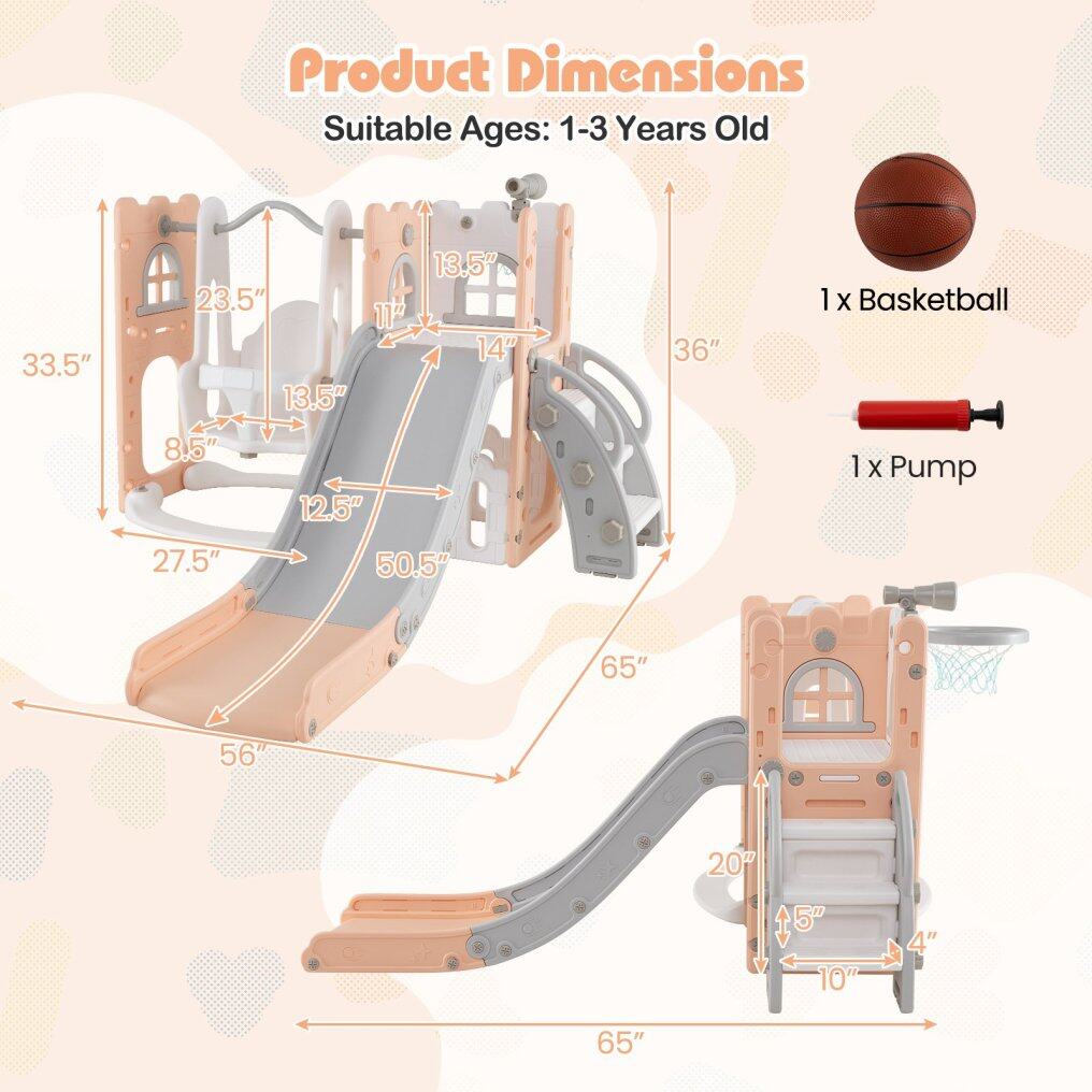 7 in 1 L-Shaped Toddle Slide: The Kid slide offers multifunctional fun with a telescope, climber, slide, swing, basketball shooting, hiding spot and storage space. This kid slide for kids is a complete entertainment hub that keeps your child engaged and active.