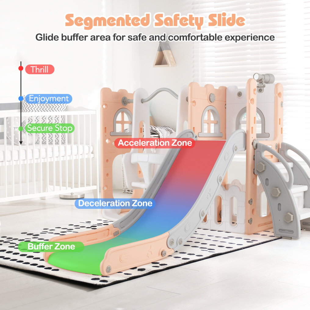 Advanced Safety Slide: Experience peace of mind with our segmented safety slide. our toddler slide and swing set includes an acceleration zone for building speed, a deceleration zone for a smooth slowdown, and a buffer zone for stopping safely, ensuring a secure and enjoyable sliding experience.