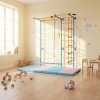 ● 7-in-1 Ladder Wall Set for Family Fun: TThe indoor wall gym is supplied with wall ladder, rope wall, monkey bars, pull-up bar, rope ladder, rope and gymnastic rings. By climbing, swinging and dangling to improve the ability to move quickly on foot and improve physical flexibility, balance and coordination. Improve the rhythm of body movement.
