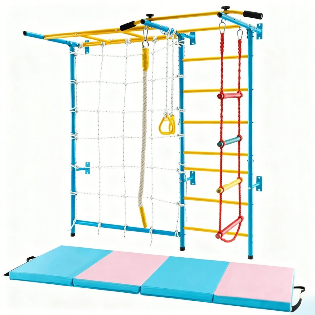 ● Bullet Point: An all-in-one kids gym set with a climbing wall ladder and safety mat—ideal for active toddlers to play, exercise, and stay safe at home.