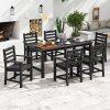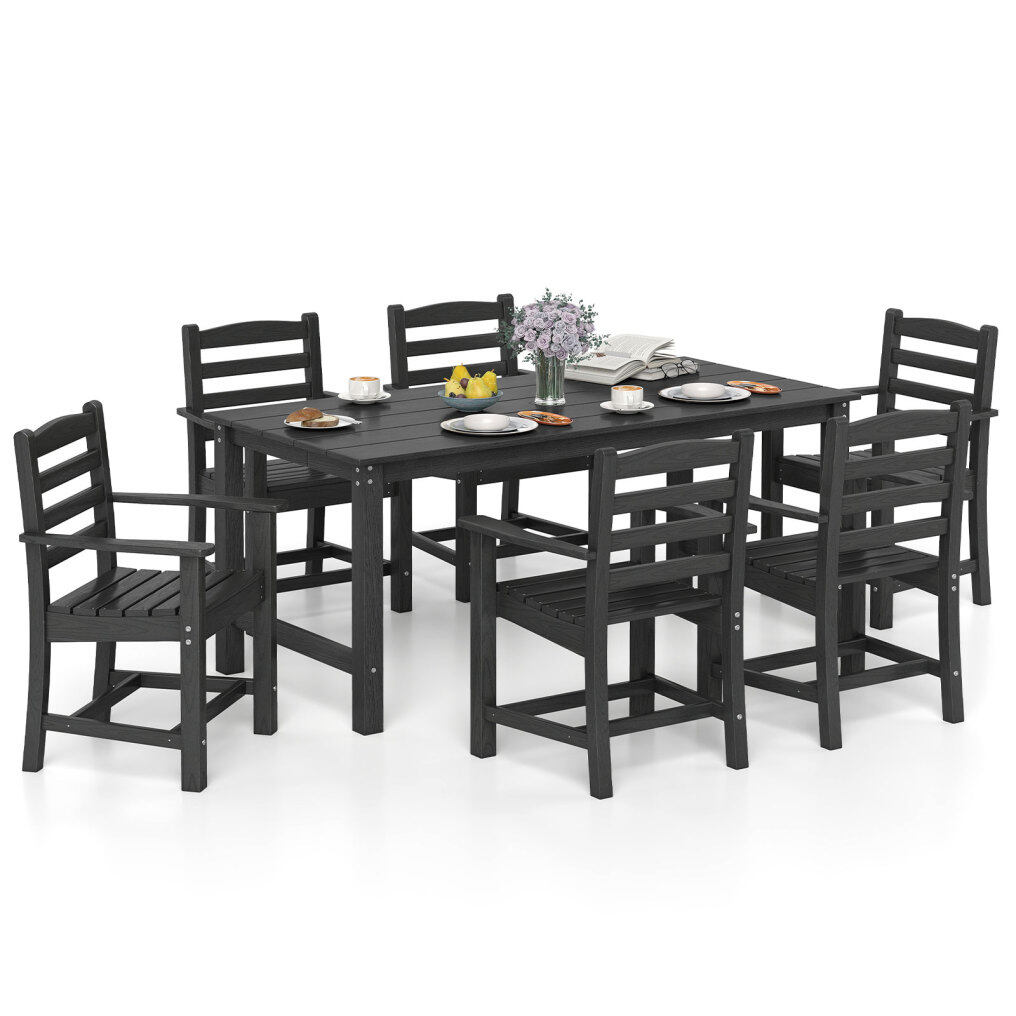 ● Outdoor Dining Furniture for 6: The garden dining ensemble features a table measuring 67” × 32” × 30” (L × W × H) along with 6 dining chairs, suitable for convivial outdoor meals or small gatherings. Its wood-like finish complements any outdoor space, be it a garden, backyard, or balcony.