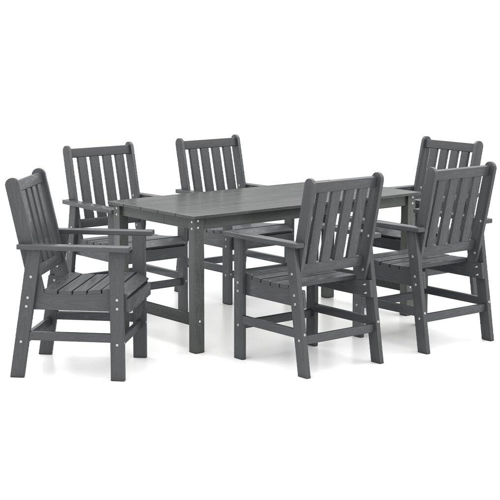 ● Chic 7-Piece Ensemble: This complete patio furniture set includes 1 rectangular dining table and 6 armchairs finished with a realistic wood-like grain that infuses rustic charm into your garden, backyard or poolside.