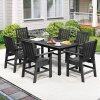 ● Chic 7-Piece Ensemble: This complete patio furniture set includes 1 rectangular dining table and 6 armchairs finished with a realistic wood-like grain that infuses rustic charm into your garden, backyard or poolside.