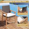 ● Comfort-Focused Armchairs: Each outdoor dining chair is built with a gently inclined backrest and curved armrests for premier ergonomic comfort. Also, removable sponge-filled seat cushions come with washable zippered covers, delivering enhanced coziness and making cleanup simple.
