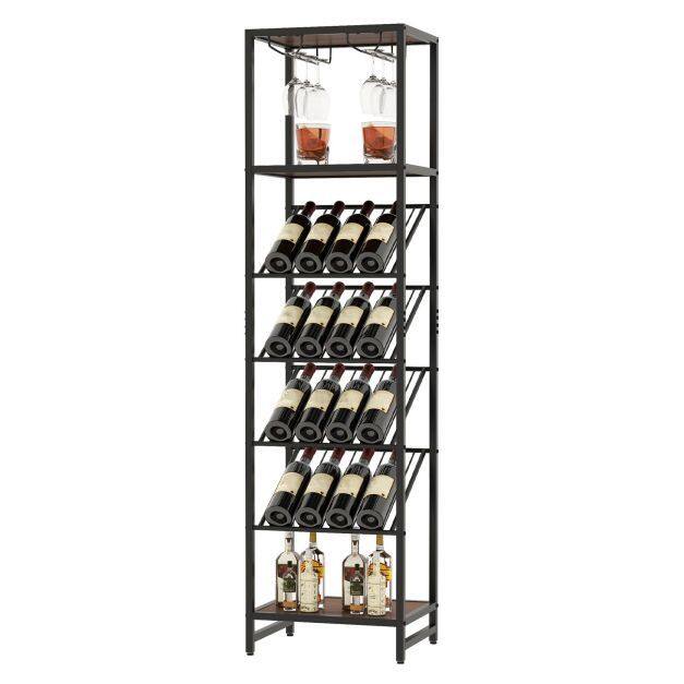 Perfect Wine Storage Option: The wine rack supports up to 16 wine bottles. The inclined wine storage angle ensures optimal wine preservation to keep the wine fresh. The suitable diameter of each wine bottle is no more than 9 cm and no less than 6.5 cm. Plus, there are 2 rows of stemware holder to store 6 glasses.