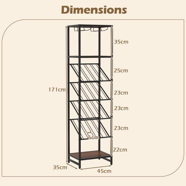 Space-saving Floor Wine Rack: Measuring 45 x 35 x 171 cm (L x W x H), the wine display stand won't take up too much floor space, which is ideal for small spaces. The multi-layer design makes full use of the vertical space.