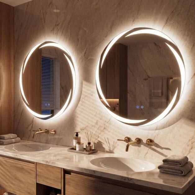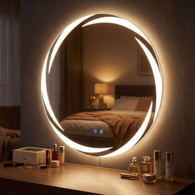 【Dual Lighting Illuminated Mirror】This round wall mirror features a petal-shaped front LED strip and a bright rear light that eliminates every shadow, providing perfect lighting ideal for daily makeup, shaving, and skincare.