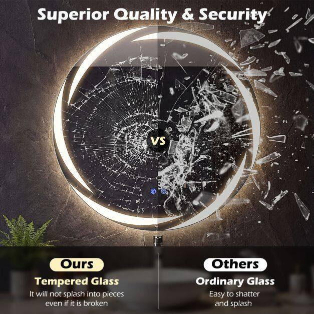 【Superior Quality & Safety】Made of tempered glass with an anti-explosion film, this high-definition LED mirror ensures not only a perfect reflection, but also exceptional safety and durability.