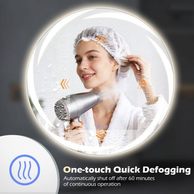 【Anti-fog for Consistent Clarity】Equipped with quick defrosting at the touch of a button, this illuminated vanity mirror is perfect for getting ready after a hot shower. It automatically shuts off after 60 minutes of continuous use.