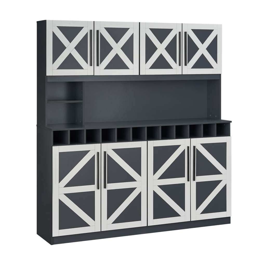 ● Flexible Storage & Added Convenience: Two 6-position adjustable shelves are included to offer customizable storage for items of various heights. This kitchen hutch also features 12 wine bottle storage compartments, allowing you to showcase your favorite vintages conveniently.