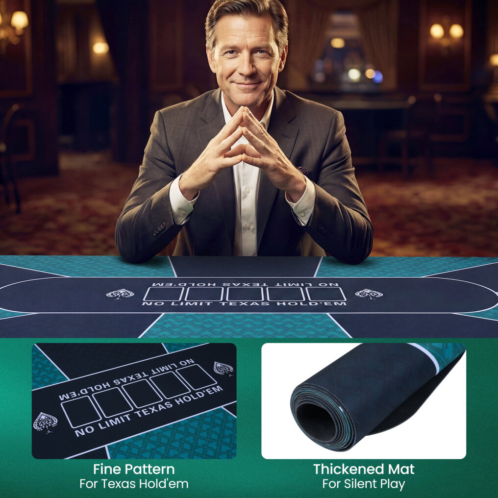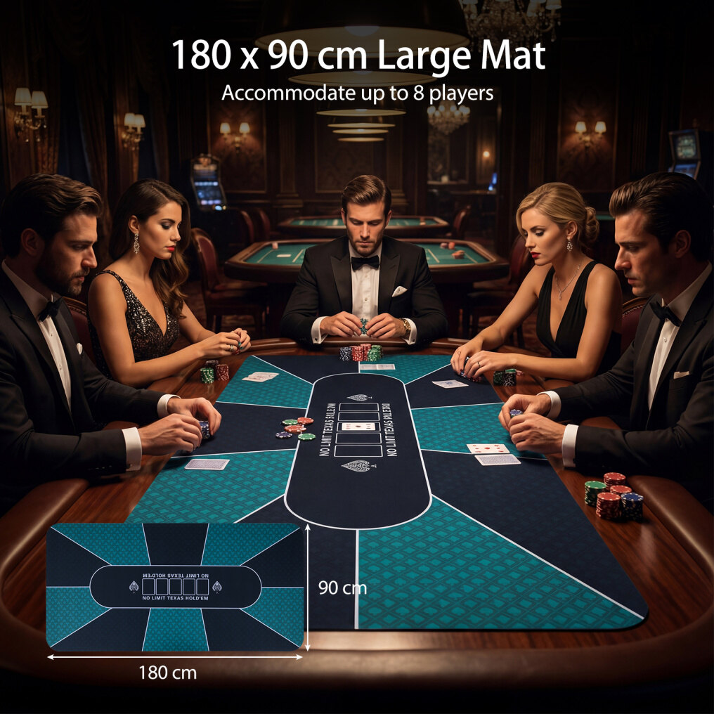 ● Spill-Proof Surface: Waterproof surface instantly beads coffee, beer, and soda into droplets that disappear with a single swipe, keeping the playing surface pristine and colors vibrant. This portable poker table mat ensures game nights stay uninterrupted by messy accidents.