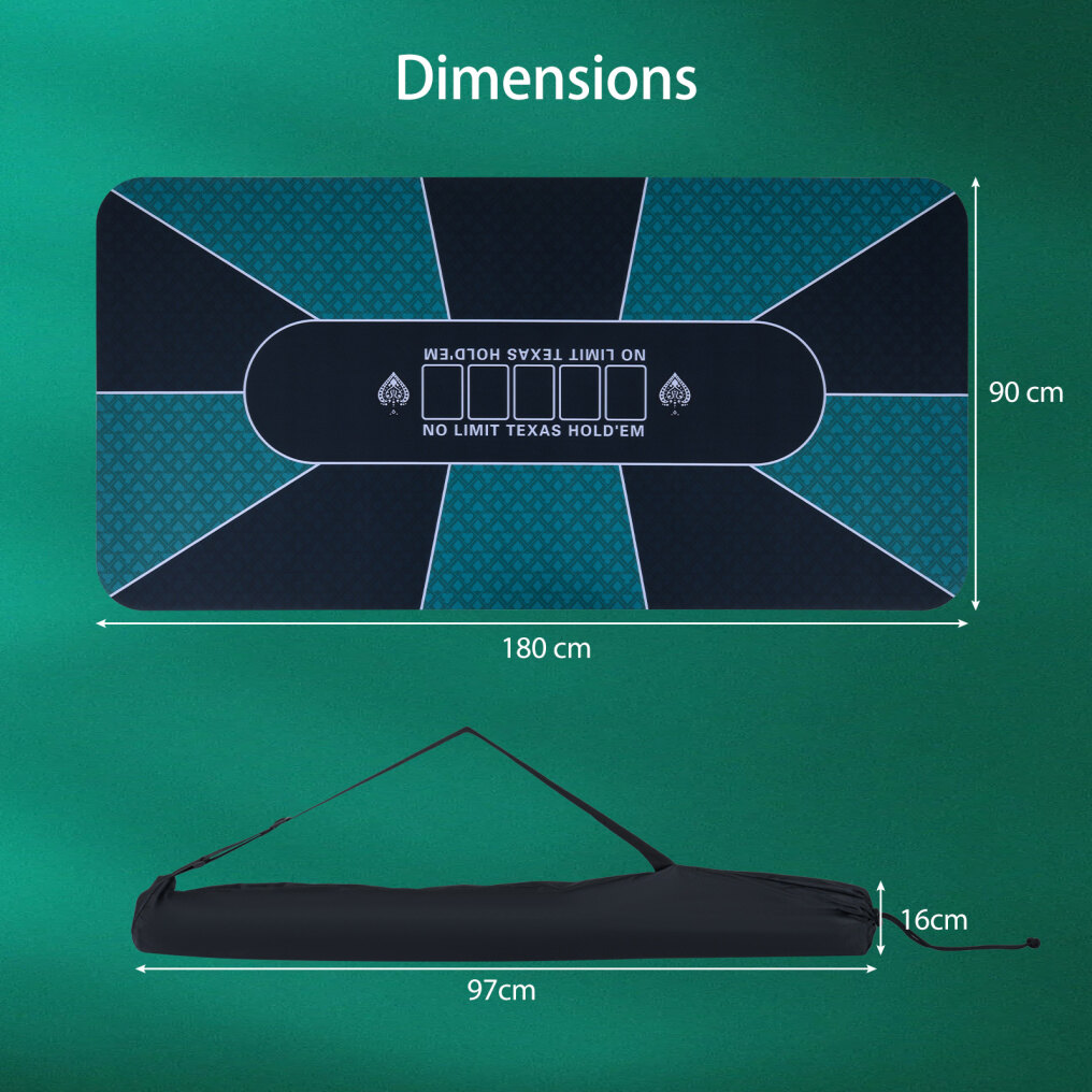 ● Roll-N-Go in 30s: The foldable poker mat rolls down to a compact 6" diameter, weighs only 5 lbs. The included rolling core and premium carry bag makes it set up or pack away in under 30 seconds, faster than a single shuffle.