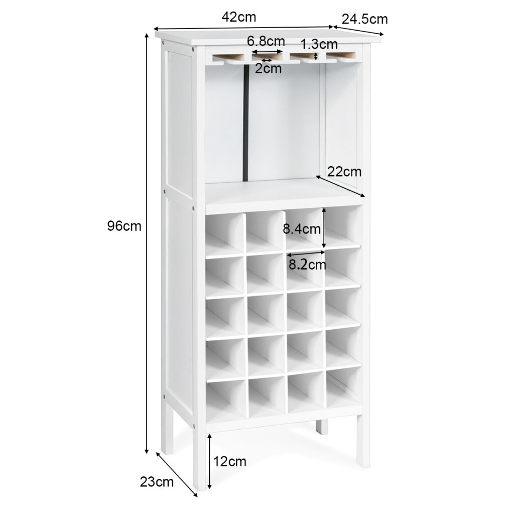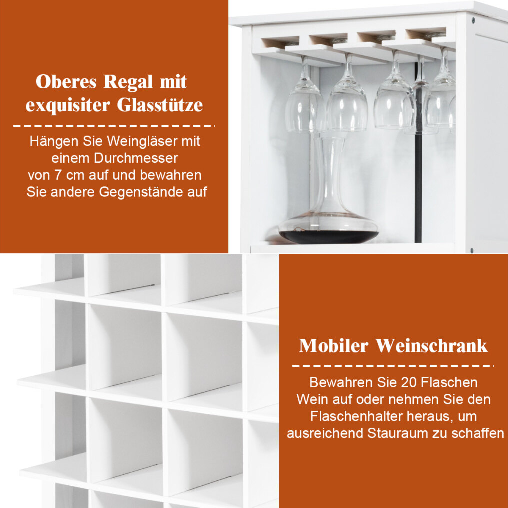 This wine cabinet is equipped with a 5-layer wine rack and 4-row glass holders. You can place up to 20 wine bottles according to your needs and desires. The top cabinet provides ample space to store your bottles and other items. The sturdy wood frame ensures its durability and long-term service life. At the same time, the elegant appearance is suitable for home, bars, restaurants, banquets, etc.